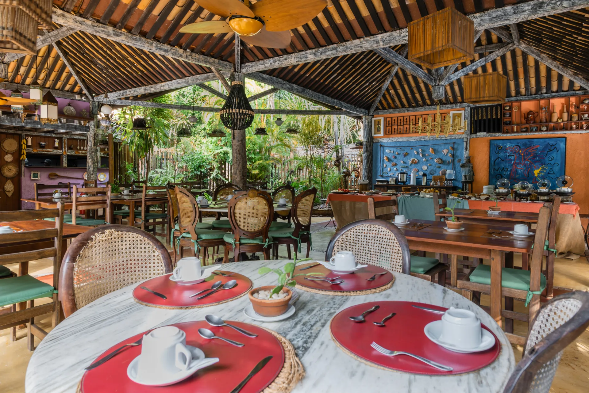 Valorizamos a diversidade cultural em nossa decoração peculiar e em nosso cardápio com pratos étnicos, além da comida típica e internacional.